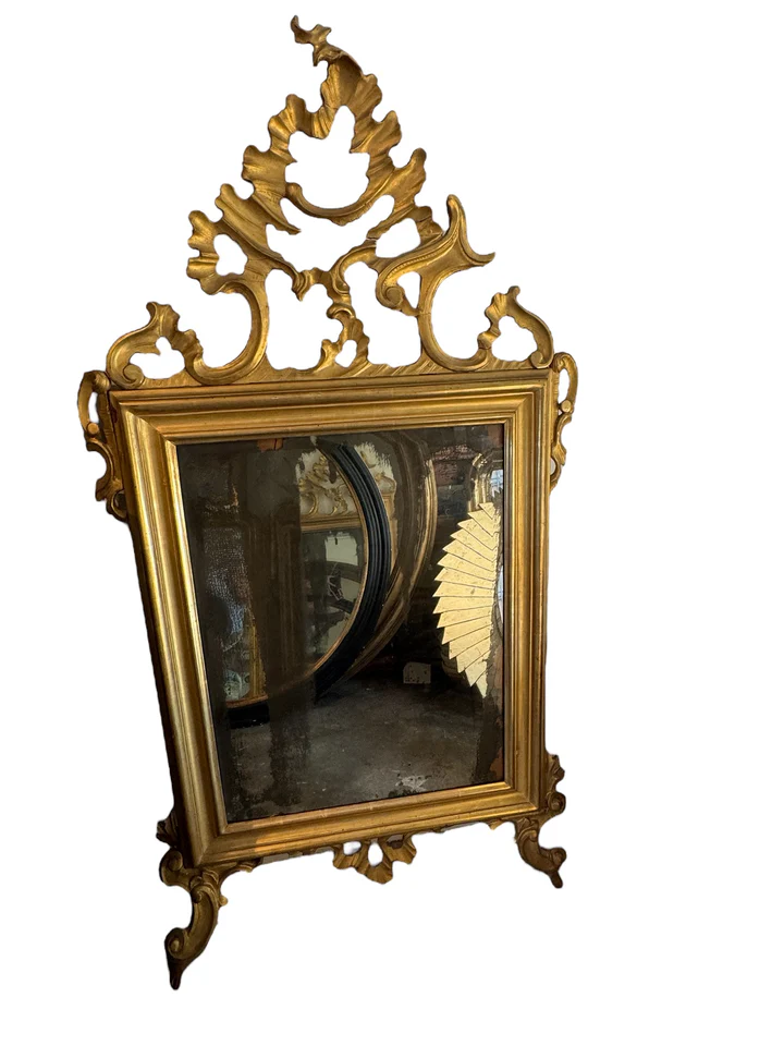 18th c French carved giltwood mirror. Original mirror with some foxing. Very rare mirror that looks like a piece of modern art.