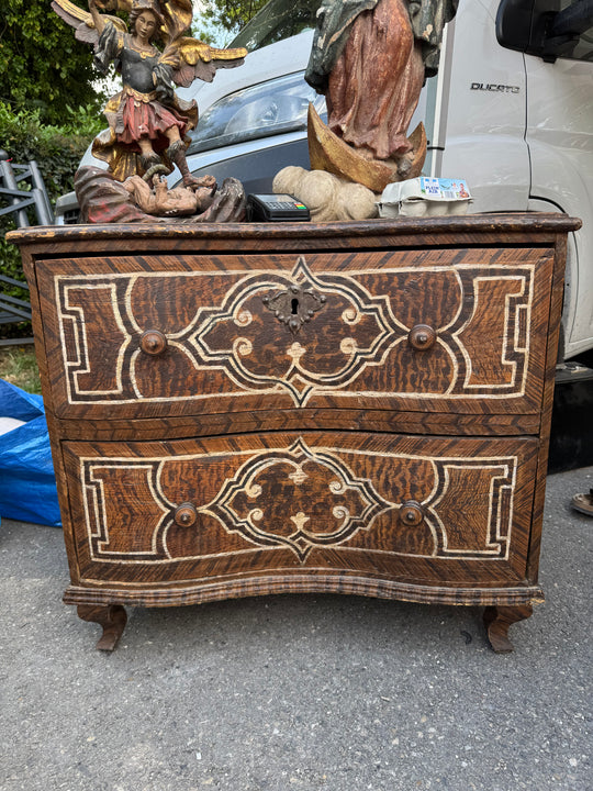 18th c German painted small commode from Irschenberg, Germany. Original painted faux bois finish.