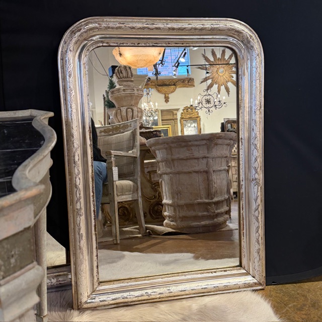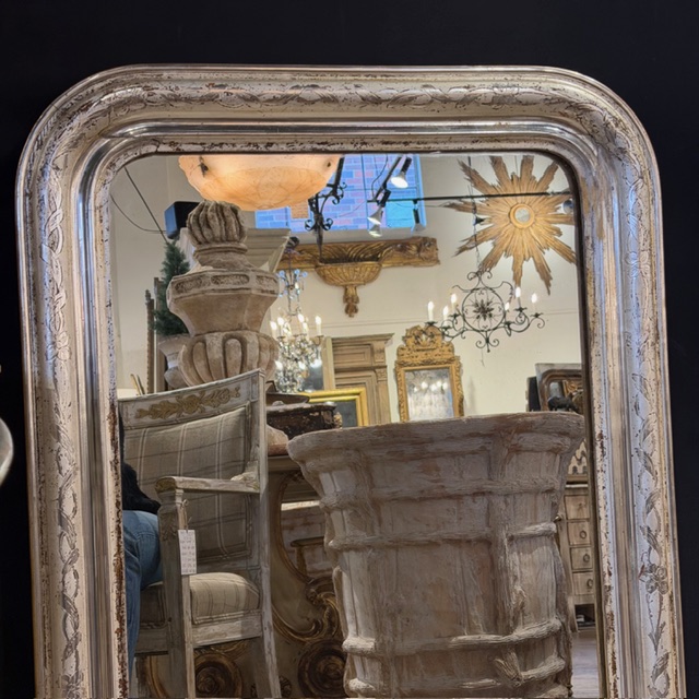 You are here: Home1 / Antiques2 / Wall Hangings3 / Mirrors4 / 19th C French Louis Philippe Silver Gilt Mirror with Vine & Floral...