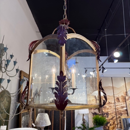 19th C Italian Brass Lantern with Acanthus Leaf Decoration