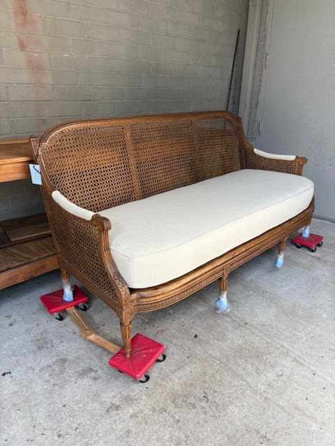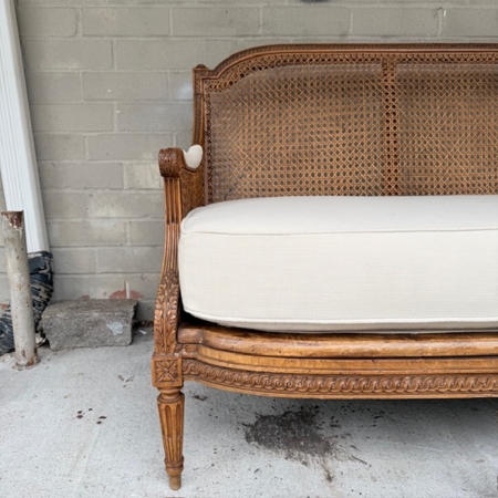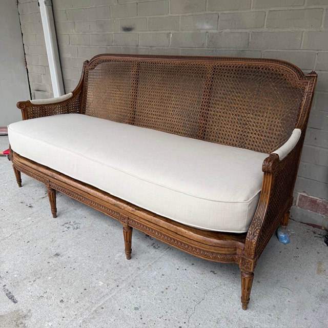 19th C Italian Caned Canape, New Upholstery