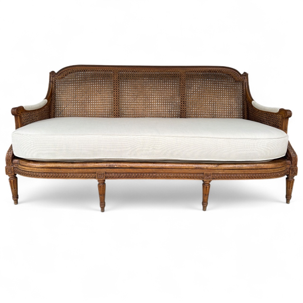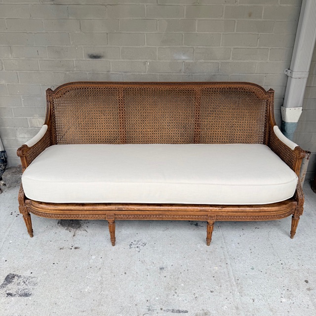 You are here: Home1 / Antiques2 / Seating3 / Settees, Chaise, & Sofas4 / 19th C Italian Caned Canape, New Upholstery
