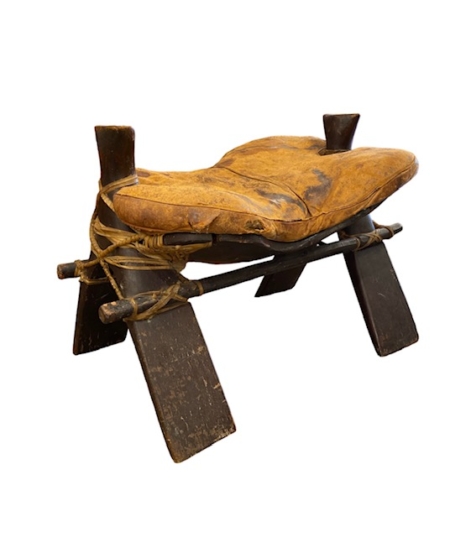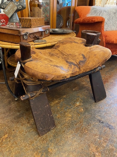 Antique Camel Bench with Leather Cushion