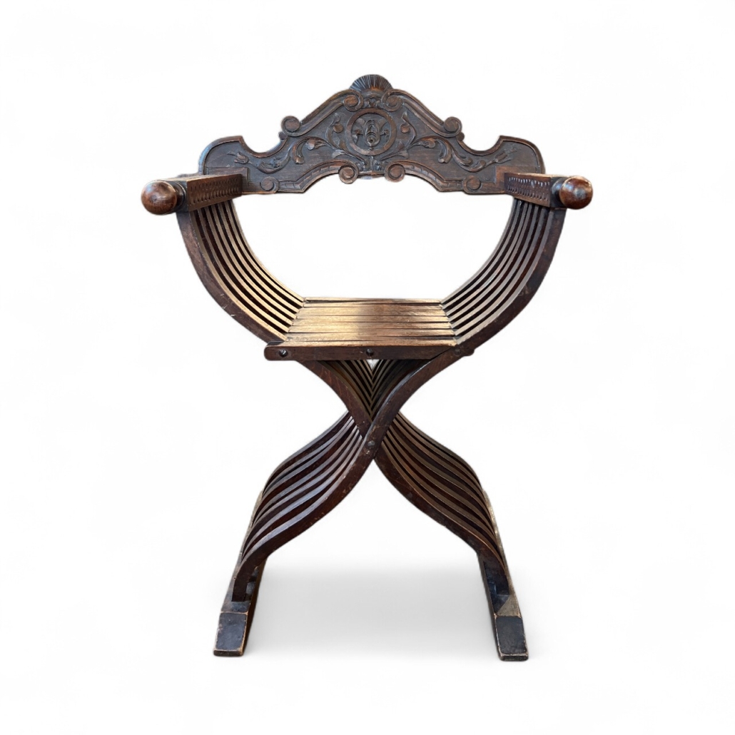 You are here: Home1 / Antiques2 / Seating3 / Single Chairs4 / 19th C Italian Carved Savonarola Chair