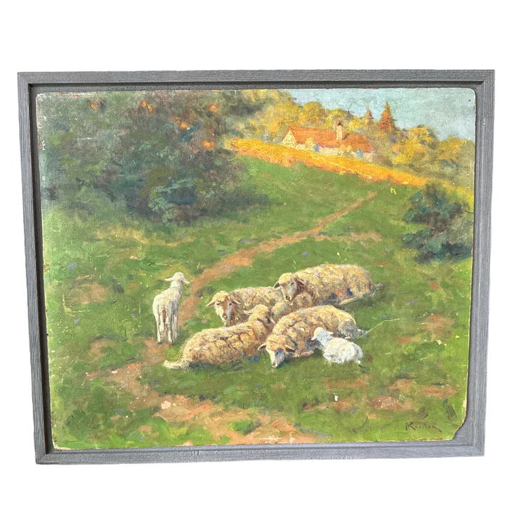 French oil on board of sheep. Newly framed.
