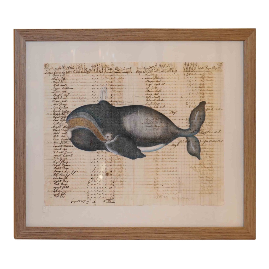 Hand Colored Whale Prints on Antique Document