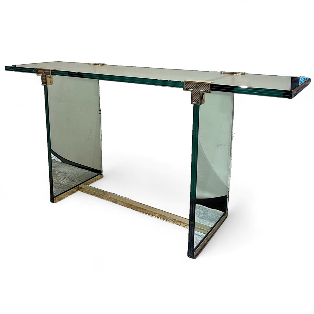Mid Century Modern Glass and Brass Console Table