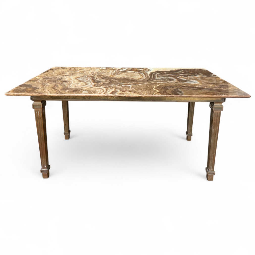 Italian Onyx Top Cocktail Table with Bronze Base