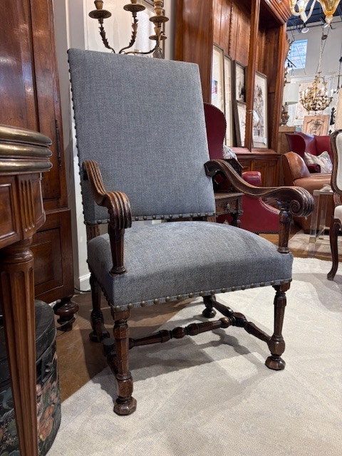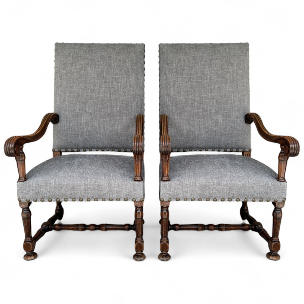 You are here: Home1 / Antiques2 / Seating3 / Pairs of Chairs4 / Pair of 19th C French Walnut Armchairs w/ New Upholstery