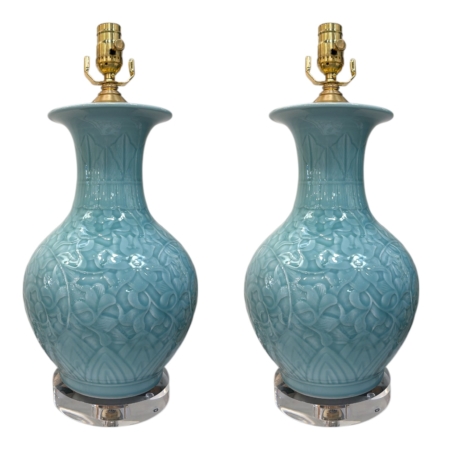 Pair of Celadon Porcelain Vase Lamps