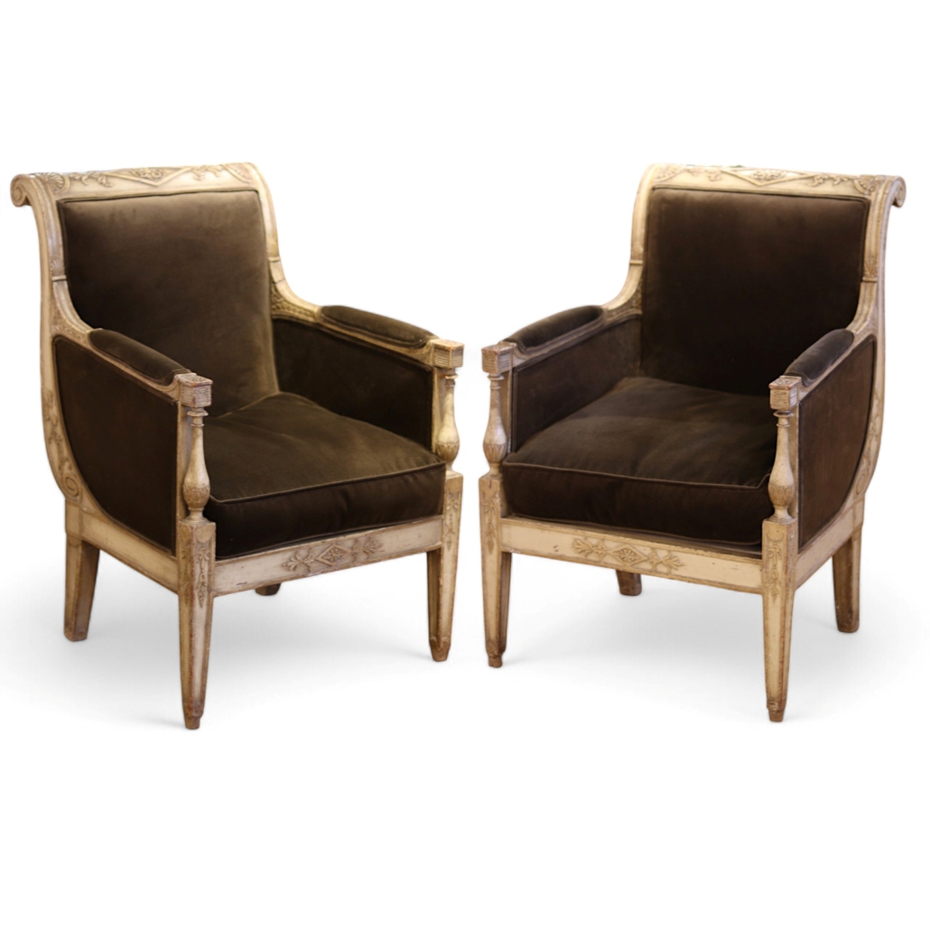 You are here: Home1 / Antiques2 / Seating3 / Pairs of Chairs4 / Pair of 18th C. Period Directoire Chairs with Detailed Carving, Newly ...