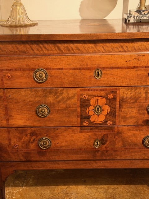 You are here: Home1 / Antiques2 / Case Goods3 / Chests & Commodes4 / Pair of Inlaid Three Drawer Commdoes