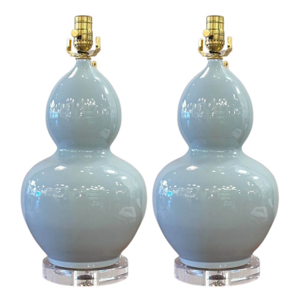 Pair of Light Blue Double Gourd Vases on Acrylic Bases as Lamps*