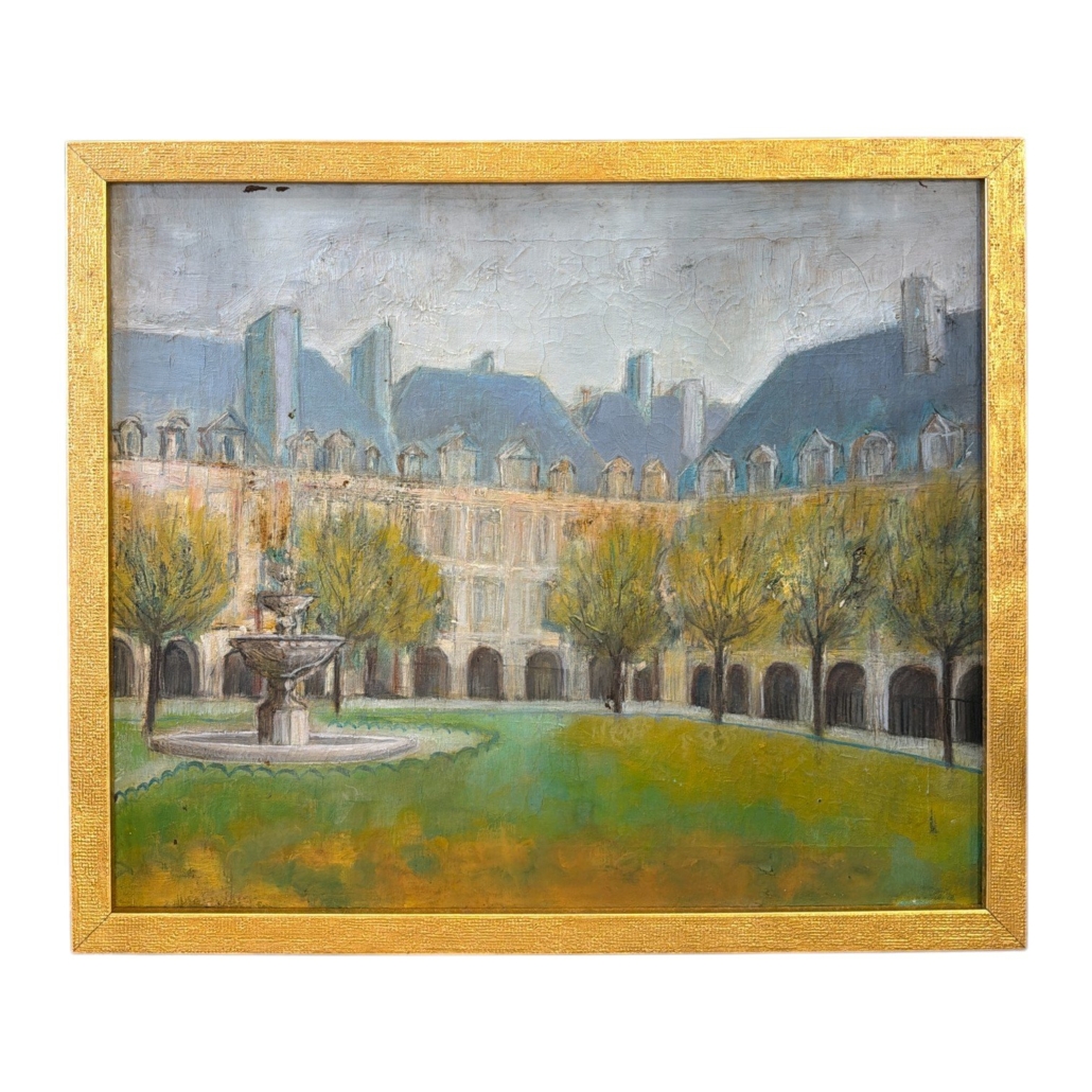 Vintage French Oil Painting on Canvas of Place Des Vosges