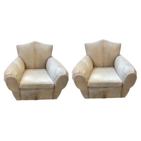 Vintage French 1940s Art Deco Lounge Chairs in Creamy White Hide Upholstery