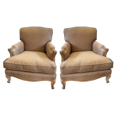 19th C. French Bergere Chairs in Updated Milk Chocolate Linen