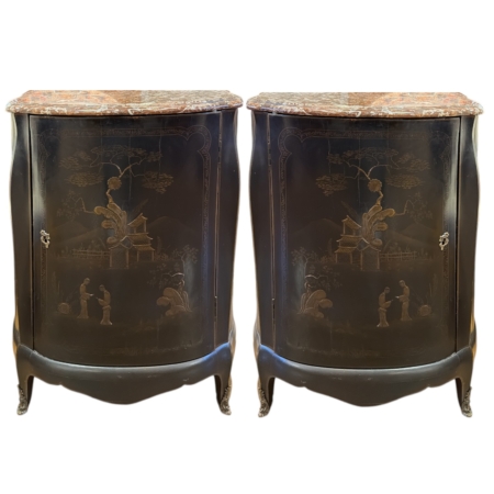 Pair of Chinoises Cabinets with Marble Tops