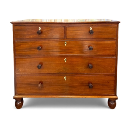 19th C. Italian Mahogany Five Drawer Chest w/ Inlaid Escutcheons