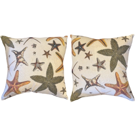 Pair of Custom Fabricated Down Linen Pillows in a Neutral Starfish Print