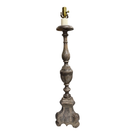 19th C. Silver Gilded Italian Altar Stick Lamp