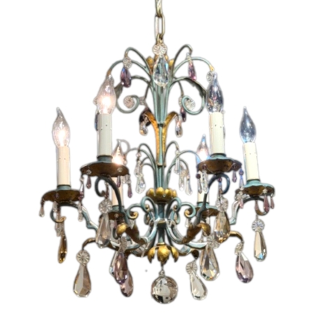 French Six Arm Blue Chandelier