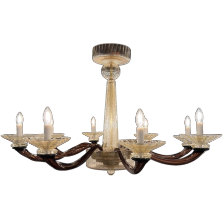 Cognac and Amber Eight Arm Murano Chandelier with Gold Flecks