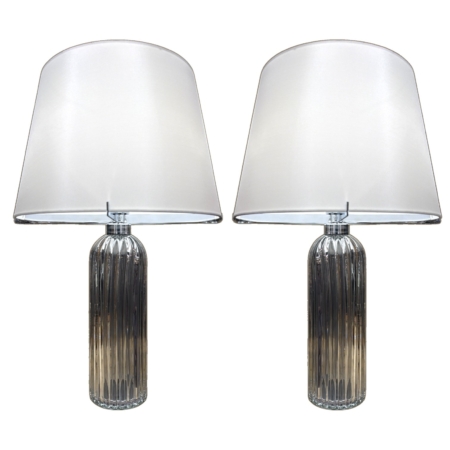 Pair of Fluted Glass Lamps with Silk Shades by Salviati & Co