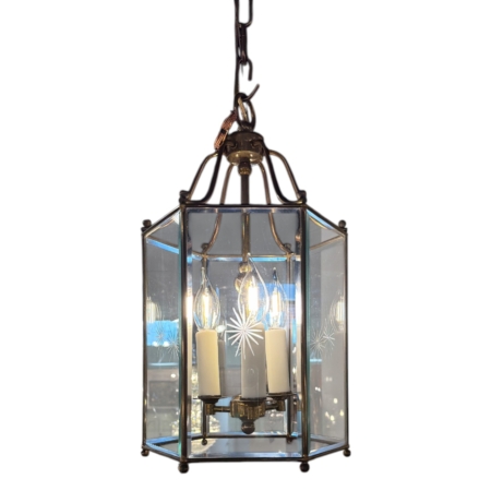 Brass Lantern with Etched Stars on Glass