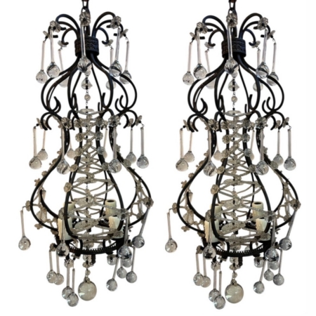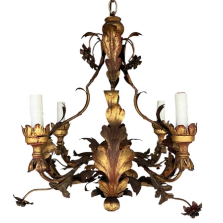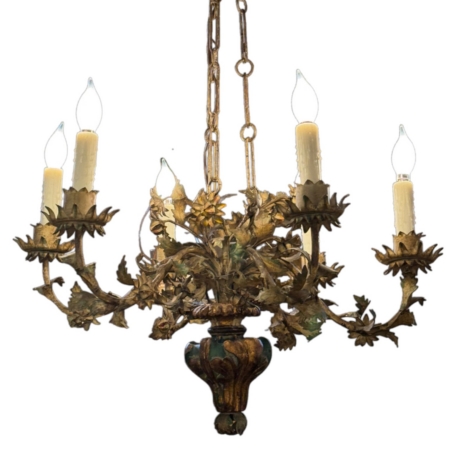 19th C Italian Wood and Metal Carved Six Light Chandelier