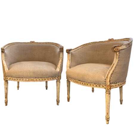 Pair of 19th C Louis XVI Style Barrel Arm Chairs