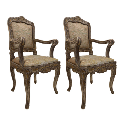 Pair of 18th C French Gilt Louis XVI Arm Chairs
