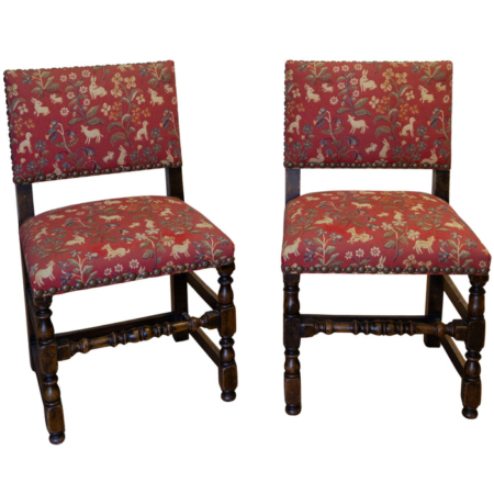Pair of Chairs with Turned Legs with Rabbit Print Upholstery