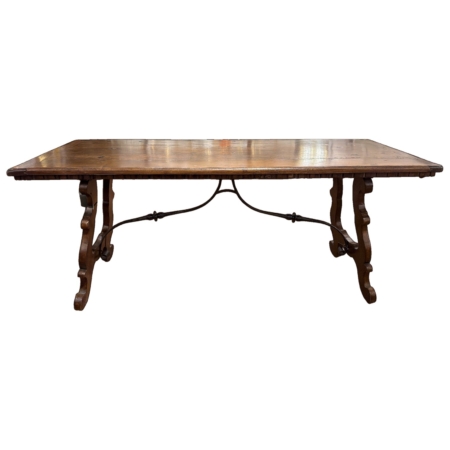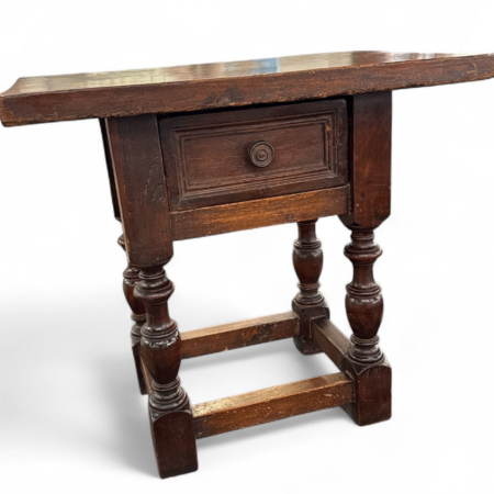 19th C French Louis XIII Barley Twist Table With Painted Top and Two Drawers