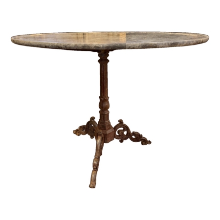 19th C French Table with Iron Base and Marble Top