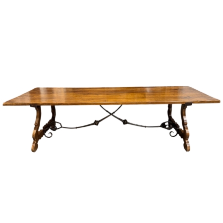 Italian Walnut Trestle Table with Iron Forged Stretcher*