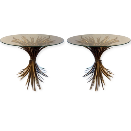 Pair of Glass Top Side Tables with Gilded Wheat Sheaf Bases
