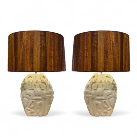 Pair of French Artisan Plaster Lamps with Shades