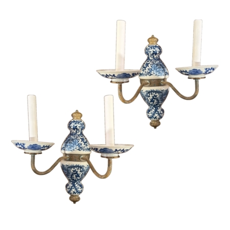 Pair of Blue and Green Gourd Vases on Custom Bases as Lamps