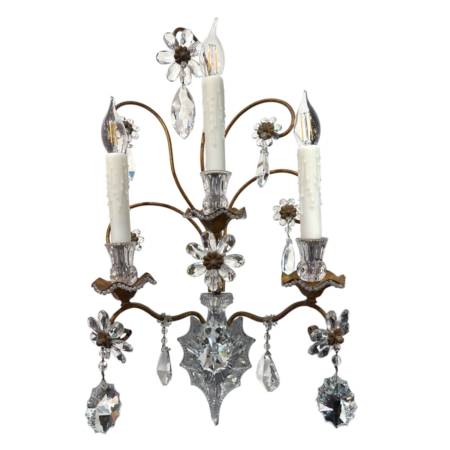 Mid Century French Crystal Sconce with Flowers, attrib. Maison Bagues